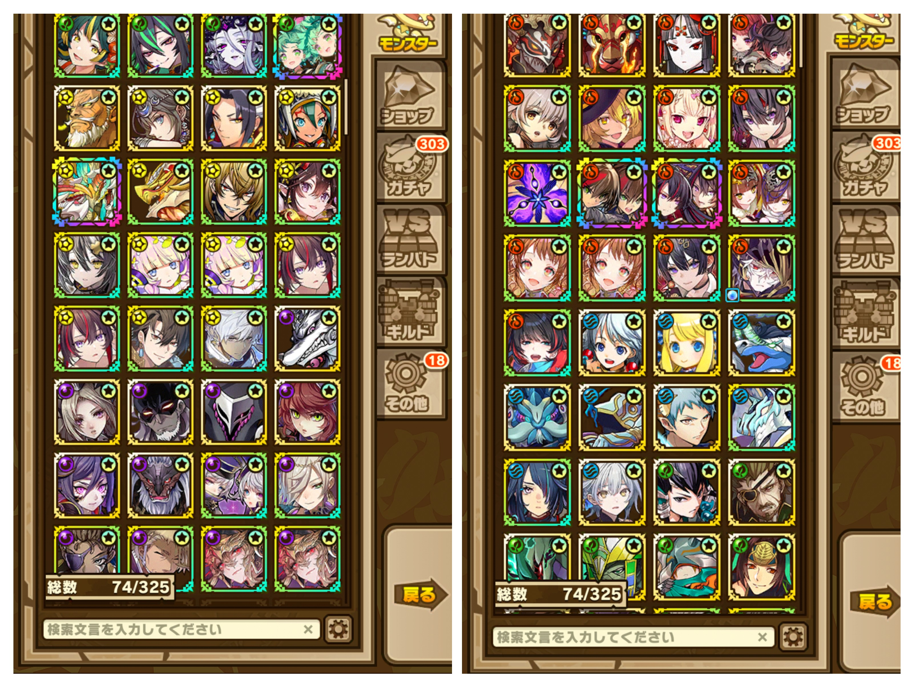 下の方がガチャ回してる回数も多いのですが、かなりの確率でガチャの引きがいい気がします。なので、色んなキャラが引けてptも組めて楽しいです。
