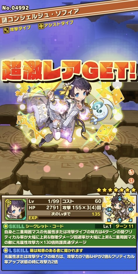 スキルはクリティカルバフ・回避アップ・ボゴカン。