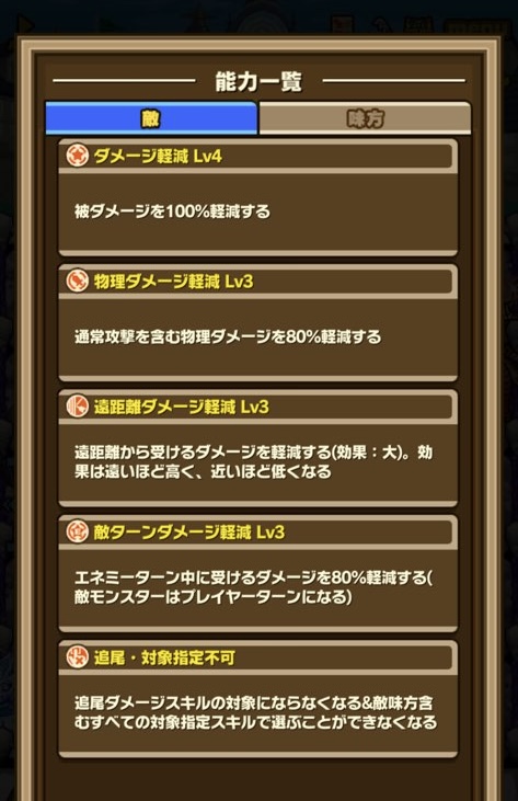 物理・遠距離・敵ターンダメージ軽減、しかもレベル3と効果がゴツい。