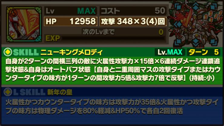 スキルターン減少、一発目のターン数がゴツいね。10ターン減少か。